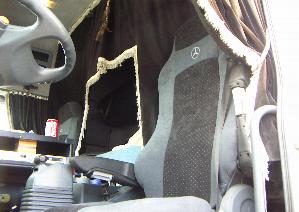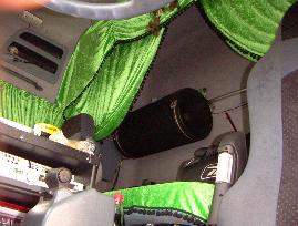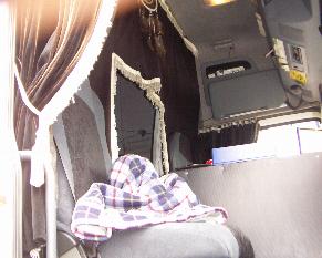 .....nach 2 1/2 Jahren hatte ich keine lust mehr auf Schwarze Gardienen und hab mir zur Firmen Farbe passend Grüne mit Schwarzen Bommeln gekauft..(Deshalb auch mein Spitznahme "Bömmelken")...noch dazu hab ich nen 2'ten DVD Player eingebaut und eine Playstation2...für längere wartezeiten....