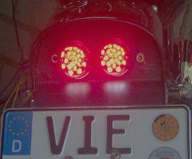 2 LED Mini Blinker in Form von einem eisernem Kreuz hinten,